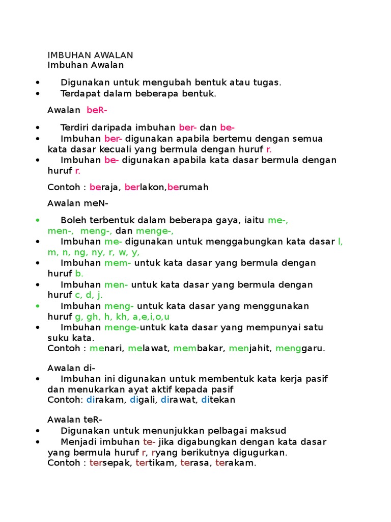 Antara contoh perkataan yang terdapat imbuhan melalui proses penambahan huruf ialah. Apabila imbuhan ber- bertemu dengan sebuah kata dasar yang memiliki huruf konsonan maka imbuhan ber- berubah menjadi be-. Awalan me-kan memiliki makna.